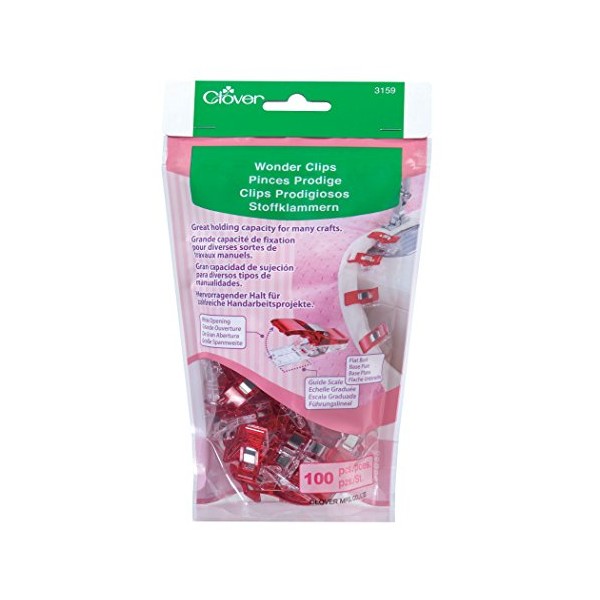 CLOVER 3159 Wonder Clips for Needlecraft, Red, 100 Per Package