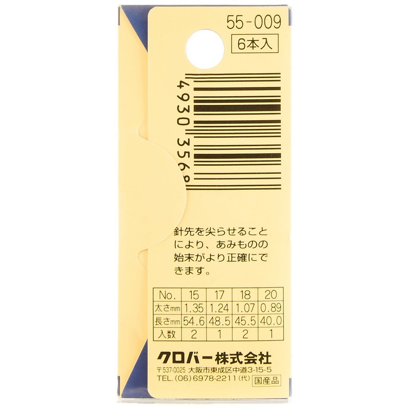 Clover 55-009 Needle Set, Sharp Point, Pack of 6