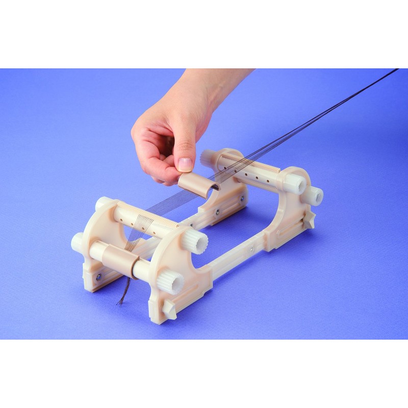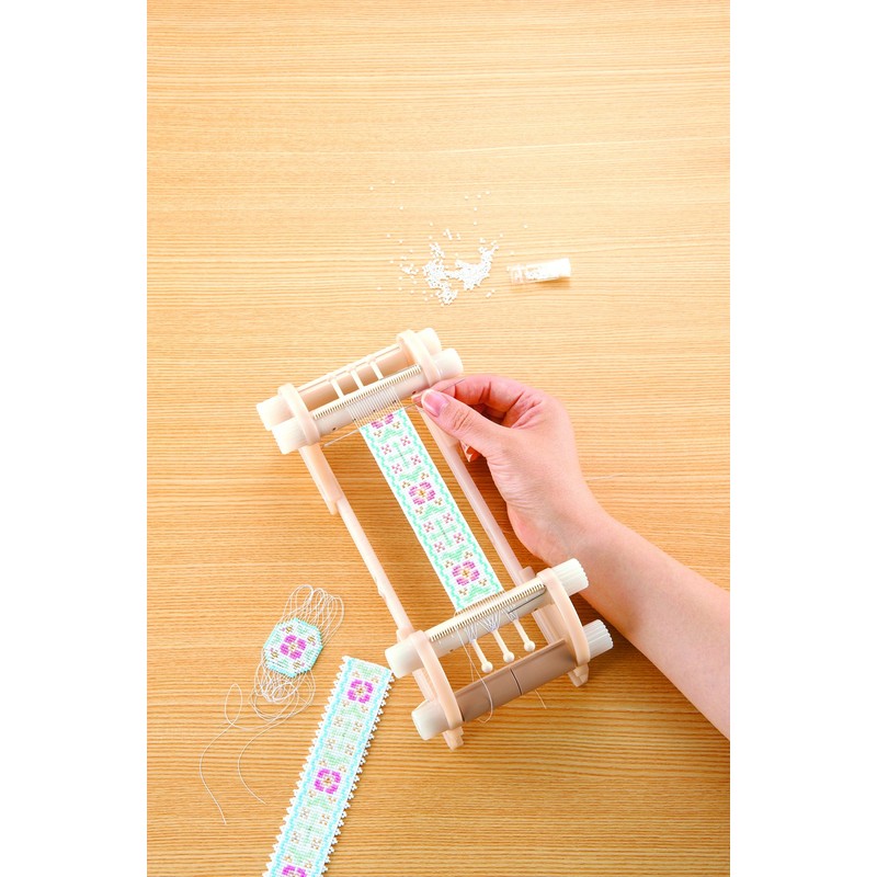 - [Materials] [Bead Loom] Frame, Pin: ABS resin, Threading Rod, Winding Rod: Polyacetal, Knob, Rail: Polycarbonate, Bolt/Nut: Iron, Screw: Polyamide, (Screw) Iron, [Holder] Polyacetal, [Stopper] Stainless steel, [Needle] Steel (Nickel plated), [Needle Case] Olefin resin, [Threader Handle: Aluminum. Wire: Stainless steel
