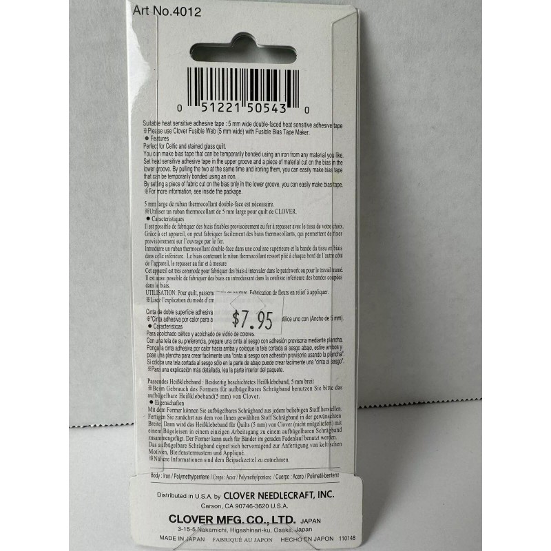 Clover Bias Tape Maker 9mm (3/8") item no. 4012