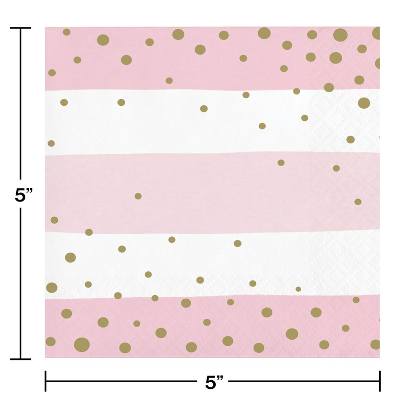 - Napkins coordinate with all pink and gold celebration party supplies