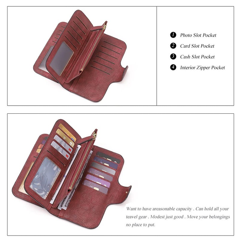 - [Internal Structure]: 4 Cash Slot Pockets + 1 Interior Zipper Pocket + 2 Photo Slots + 14 Card Slot Pockets. Practical multi slots are enough to hold cash, credit cards, coin, and other small things. Multi-storey fold is designed for you to keep your things organized well, make it convenient and suitable for daily life.