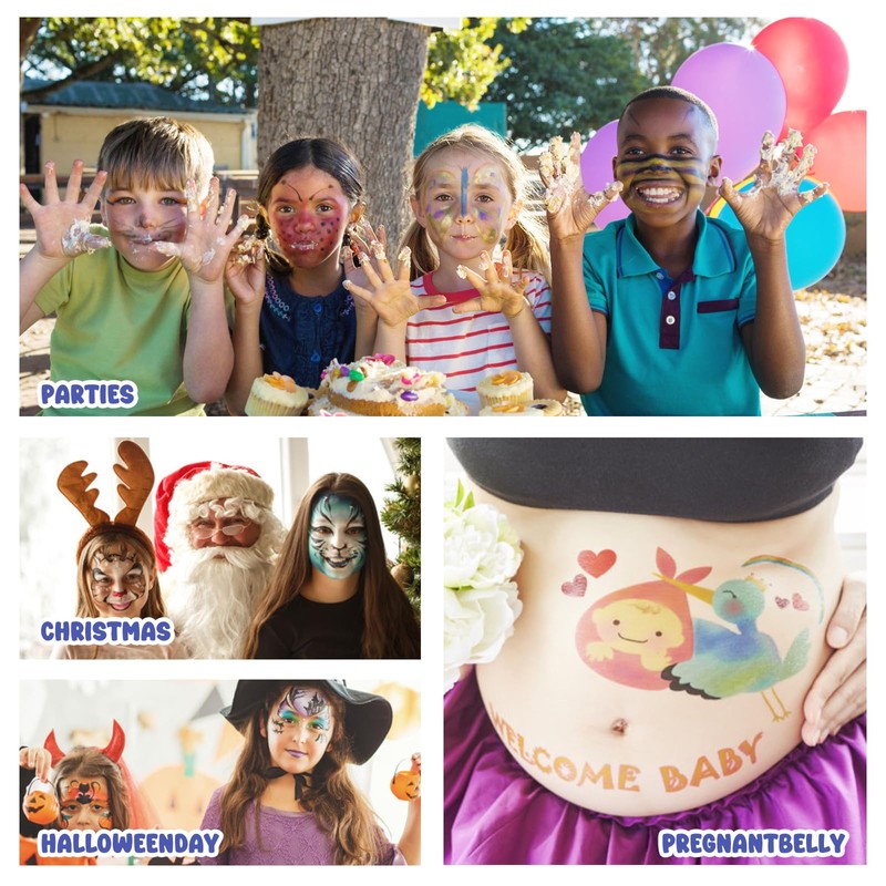 - Wide application: these cosmetic pens are perfect for children's parties or events such as Halloween makeup, carnival, Christmas, birthdays, school events and more. Suitable for all children and adults to paint on face and body.