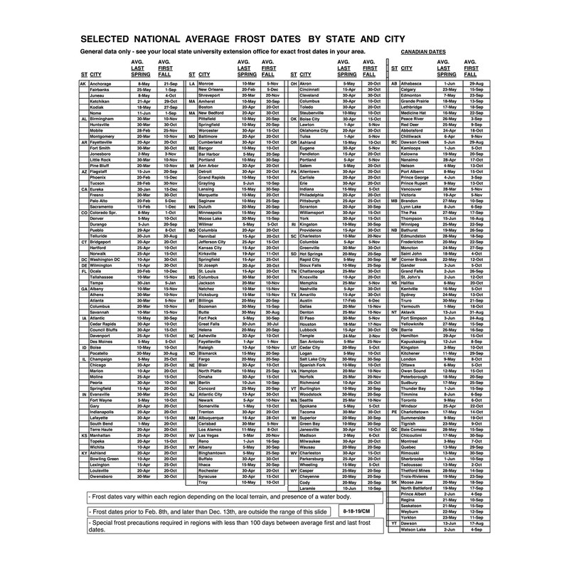 • Comes with listing of Local Spring & Fall Frost Dates, USA and Canada (Has a Sliding Frost Line)