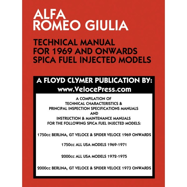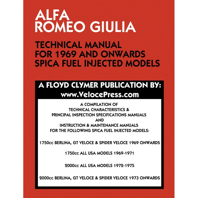CLYMER ALFA ROMEO GIULIA TECHNICAL MANUAL 1969 & ONWARDS SPICA FUEL INJECTED