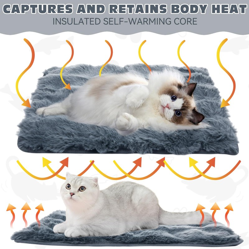 - Safe Self Warming: no Electricity needed, our cat heating pad mat uses advanced thermal materials to absorb, retain, and reflect your pet's own body heat; This clever structure delivers cozy warmth back while locking in temperature, creating a consistently warm, hazard free sleep zone that's always ready