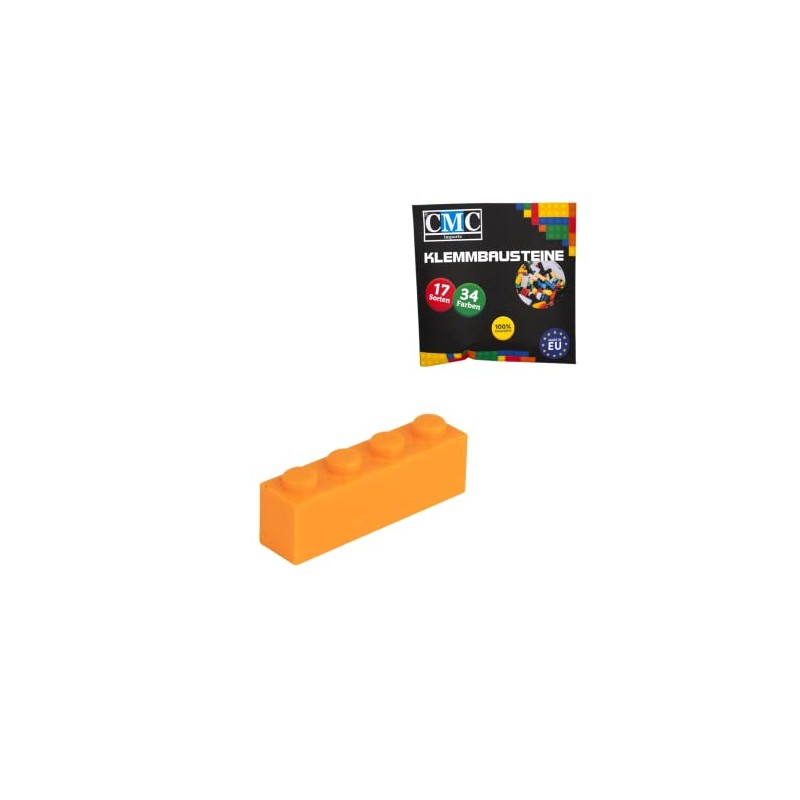 CMC imports 30 Clamping Blocks, Building Blocks, Basic Building Blocks, 1 x 4 Nubs, Compatible Bricks, 34 Different Colours (150 - Light - Orange)