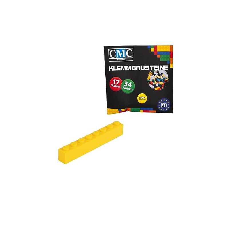 CMC imports 50 Clamping Blocks Building Blocks Basic Building Blocks 1 x 8 Nubs Compatible 8 Nubs Bricks 34 Different Colours (513 - Yellow)