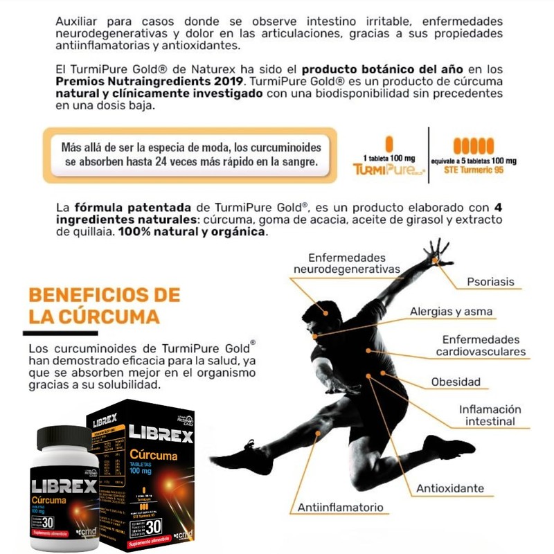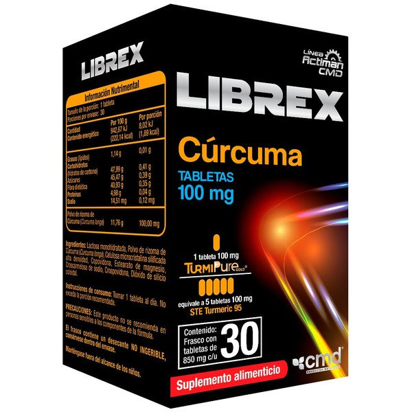 CMD - LIBREX - Tabletas de Cรบrcuma - Suplemento Alimenticio - 1 Caja con 1 Frasco de 30 tabletas