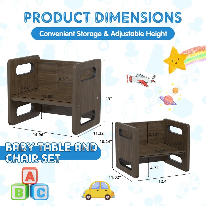 CMFYDAILY set is more than just furniture—it’s a multi-functional tool! The chairs and table can be used in multiple ways to adapt to your toddler’s needs: