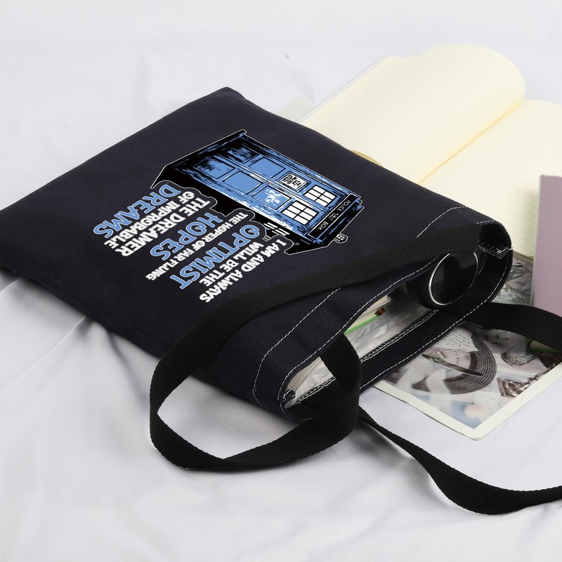 CMNIM Doctor Movie TV Show Who Tard-s Black Tote Bag Doctor Movie Lover Gift Police Box Theme Shoulder Bag for Fans (Doctor W Black Tote Bag)
