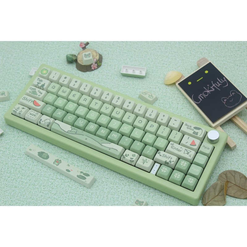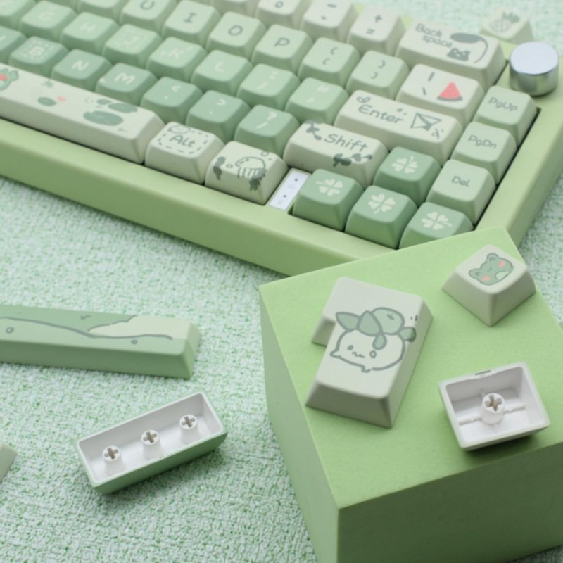Cmokifuly Frog Cute Keycaps MDA Profile Custom PBT Green Keycap for Mechanical Keyboard,148 Keys Dye-Sub Cute Keycaps (Green Frog)