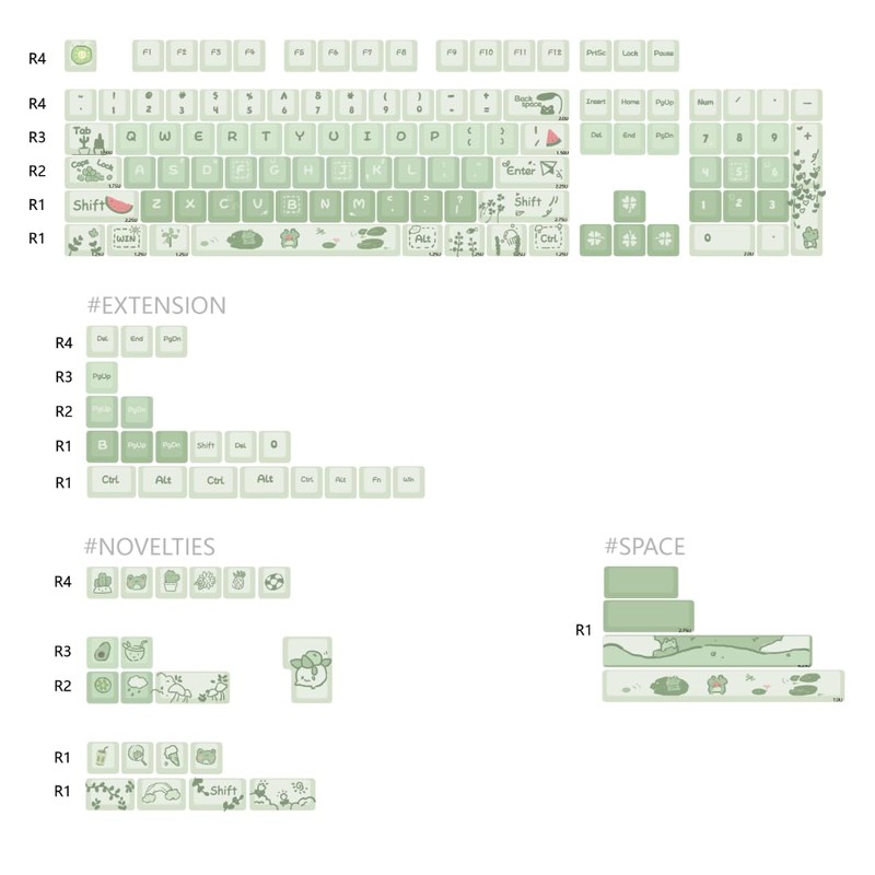 - FULL SIZE KEYS SET Coming with 148 keys,suitable for most kinds of different layout keyboard.It has some different specification spacebars,such as 7u,2.75u.6.25u,so even your keyboard is not standard,these keycap set is still suitable for your keyboard.