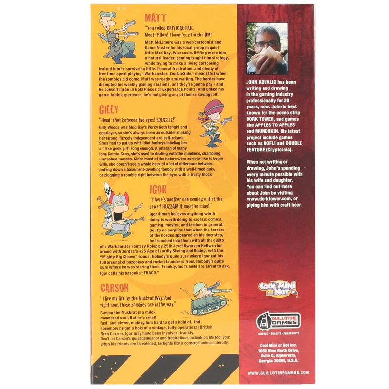 John Kovalic has had a long and storied career creating art for some of the most successful board games of all time. With his Special Guest box for Zombicide, four new Survivors were created based on his designs. Carson the Muskrat is small, fast, and clever. Oh, and somehow he’s gotten hold of a fully operational tank! Gilly is fiercely independent and self-reliant. She’s a cosplayer who’s dealt with the shuffling hordes at comic conventions. The walking dead should be no problem. Igor is armed to the teeth and welcomes the zombie plague with a surprising fervor. Matt is a natural leader. He’s most bothered by the disruption to his weekly game night this outbreak has caused. *This is an expansion. The Zombicide Core Box is needed to play.