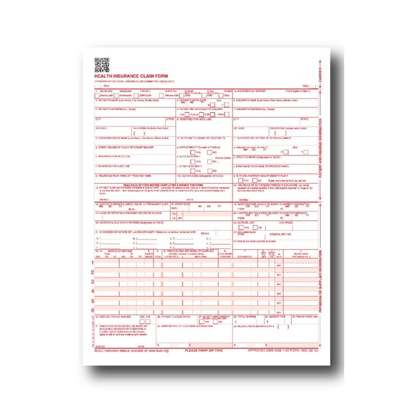 • All hcfa 1500 claim forms are Printed in OCR Red ink and will align perfectly with your software
