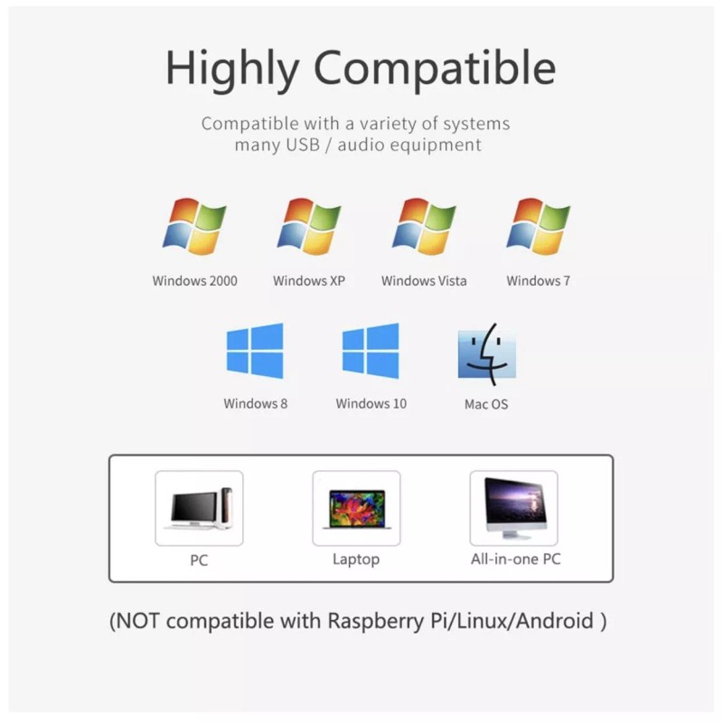 - USB Plug&Play - no drivers to install, hassle-free installation, well compatible with Windows(7, 8 and 10)and Mac OS.(NOT compatible with Raspberry Pi/Linux/Android