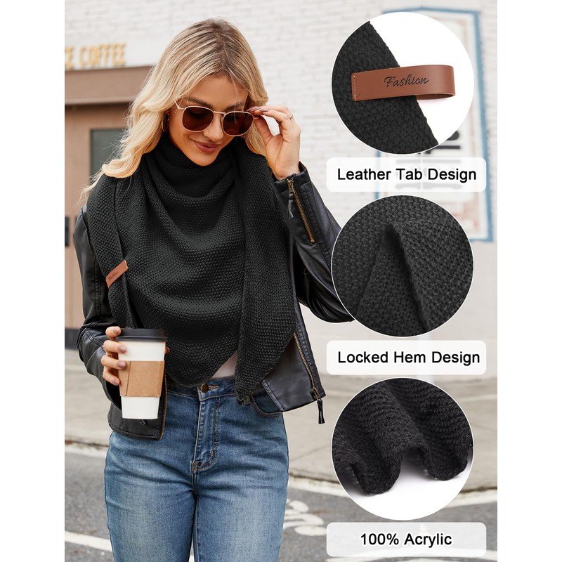 - Oversized & Comfortable Scarf The triangle cut design with leather tabs can be used to keep the scarf in place; The large triangular scarf can also be used as a scarf to add style.