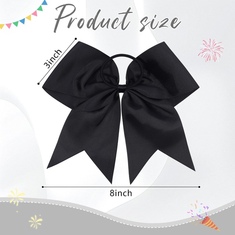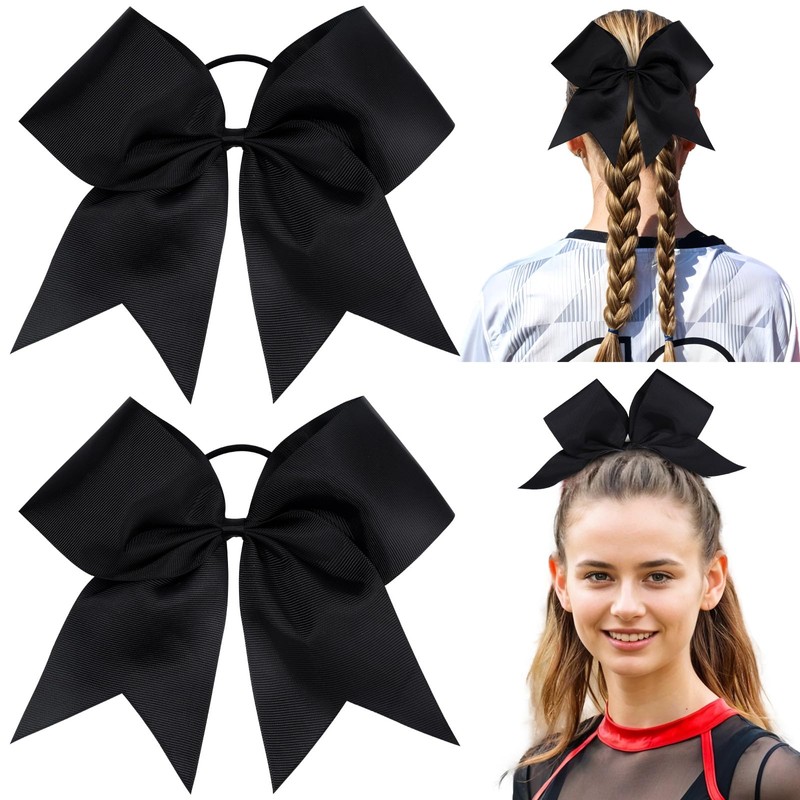 CN 2pcs Cheer Bows for Cheerleaders, Black Cheerleading Hair Bows for Girls Women with Elastic Ponytail Holders for Softball Competition Sports Hair Accessories