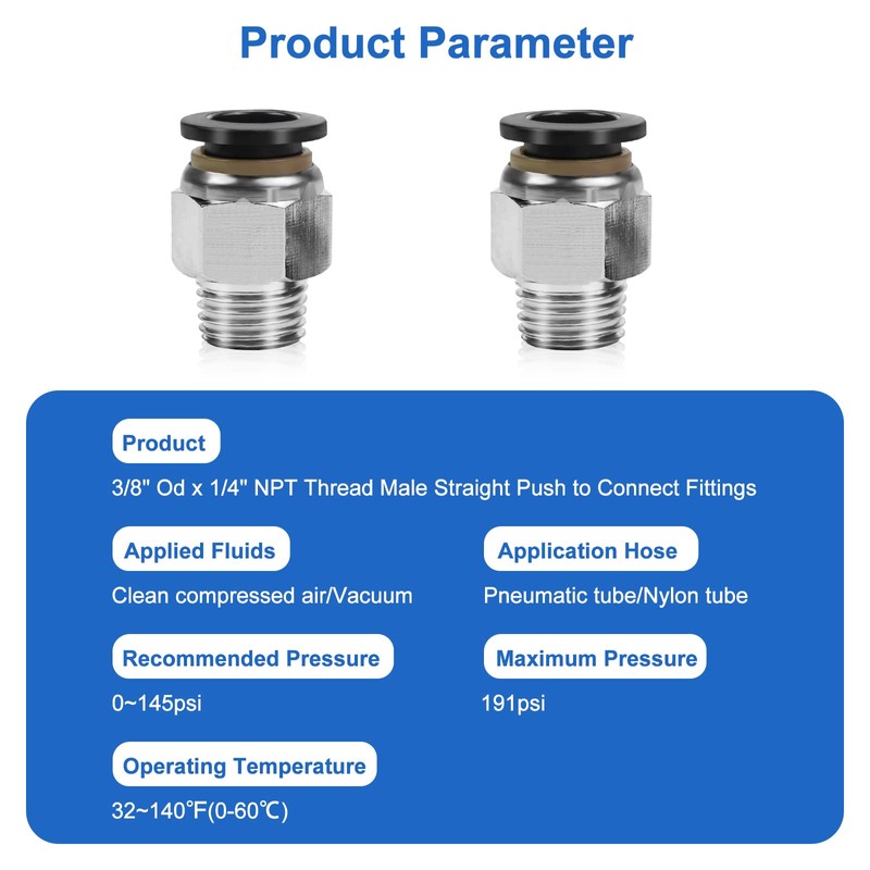 - ♥【Lo que obtienes: rosca NPT de 3/8 pulgadas de diámetro x 1/4 pulgadas para conectar accesorios, 10 piezas en total. Estilo del cuerpo: macho recto