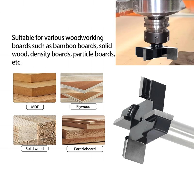 • Cutting Material: Used on planing and rabbeting the following materials: MDF/Plywood /Chipboard /Plastic /Acrylic / Fiberboard/Balsa/HDU Board /HDF/LDF / Epoxy (Epoxy Resins) / Hardwood/Softwood, Use on CNC and other automatic routers as well as hand-held and table-mounted portable routers.