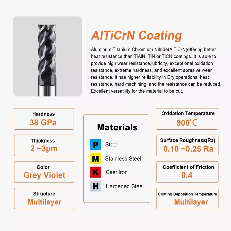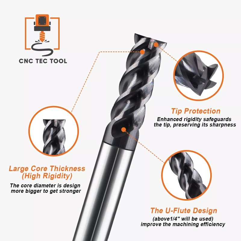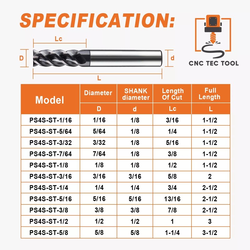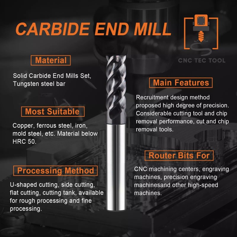 CNC TEC Tool 15 PCS Set 1/16" 5/64" 3/32" 7/64" 1/8" Square Carbide End Mill AlTiCrN Coated