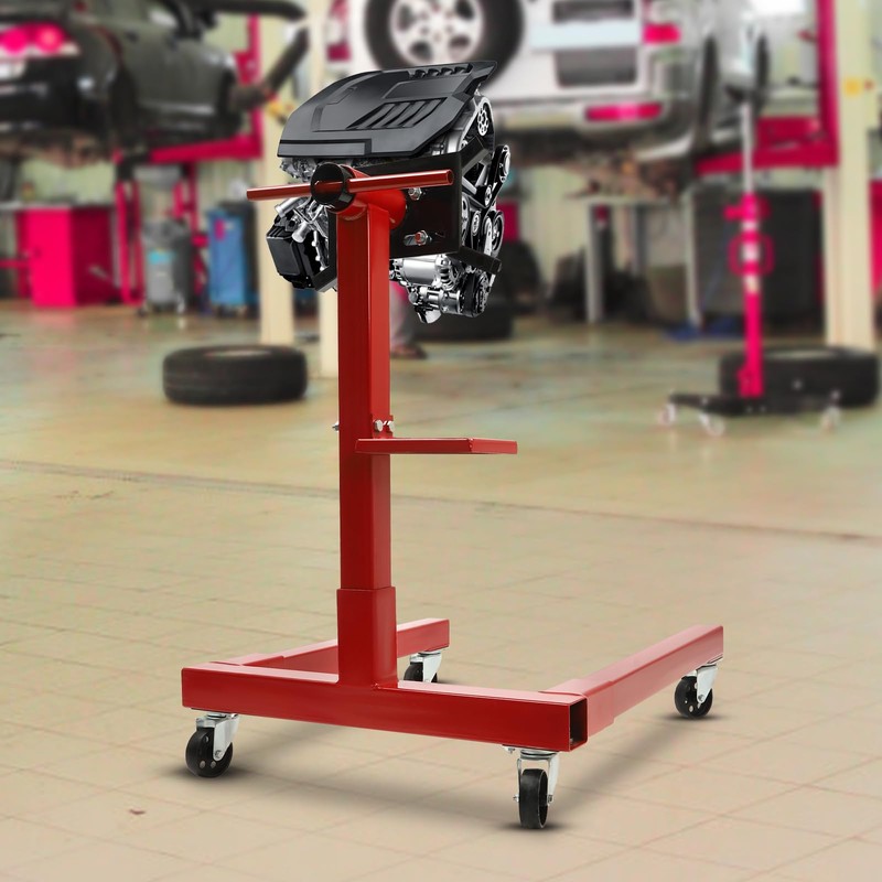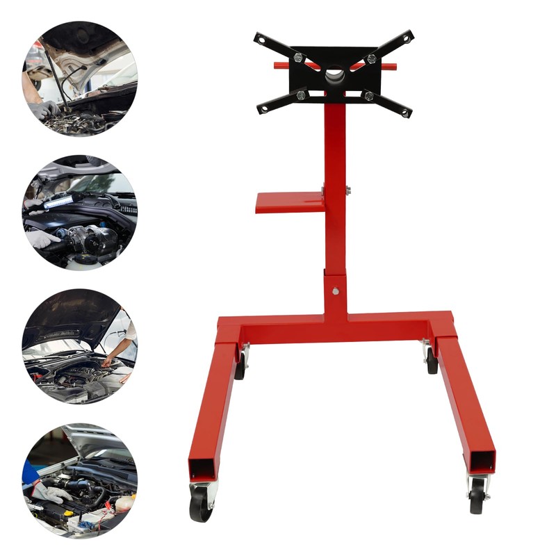 CNCEST Engine Stand Motor Hoist Dolly Mover Jack,Rotating Engine Stand with 360 Degree Adjustable Mounting Head (Red,Carbon Steel,1250lbs)