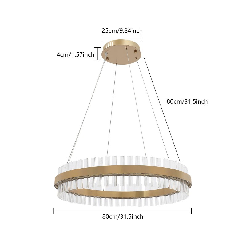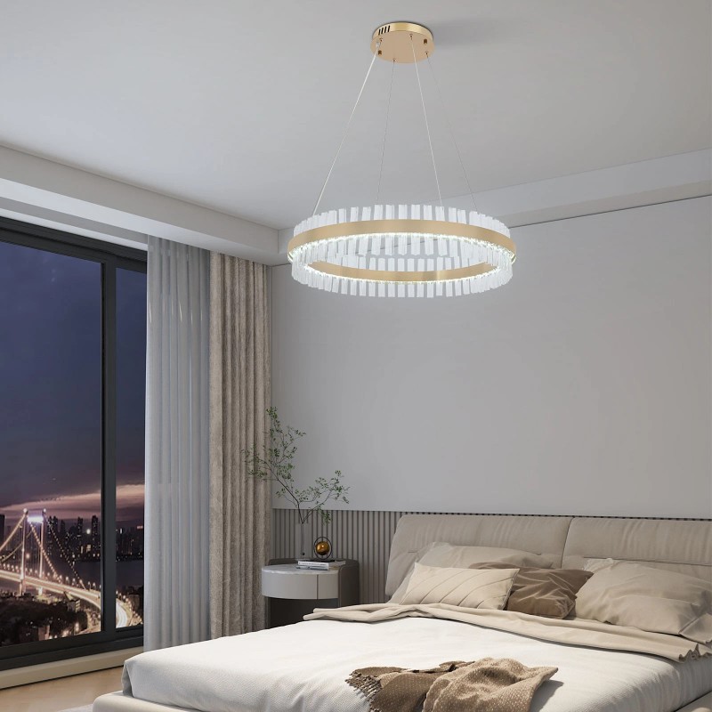 CNCEST Modern LED Chandelier Crystal Pendant Lamp Round Ceiling Light Ring Adjustable
