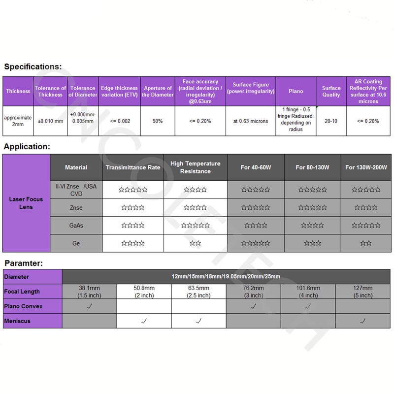 - It's good for 40W/50W/80W/100W/130W/150W CO2 laser 10600nm 10.6um.