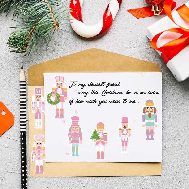 - Unique Christmas Designs: Featuring 16 unique and adorable pink nutcracker soldiers, our glossy nutcracker stickers add a distinctive touch to your Christmas decorations. The charming designs bring a fresh vibe to your celebrations, making them a joyful addition to your holiday festivities. Each design is repeated for consistency in your creative projects.