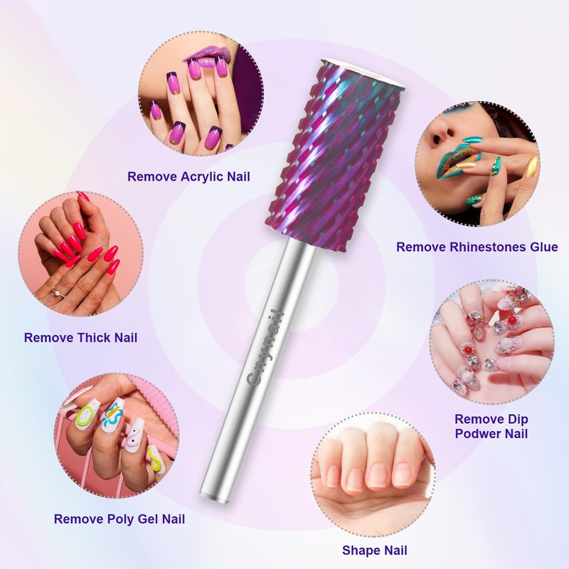Cnynail 3/32" Large Barrel Bit Tungsten Carbide Nail Drill Bit Safety Bit for Gel & Acrylic Removal, 2- Way Rotating Efile Tip, Salon Electric File Accessory (XXC Girt, Purple)