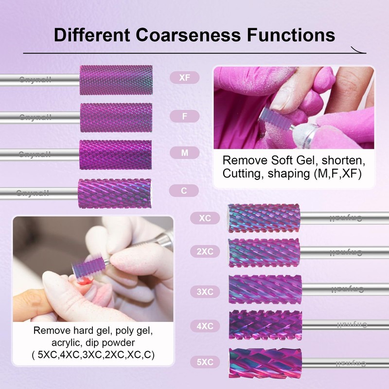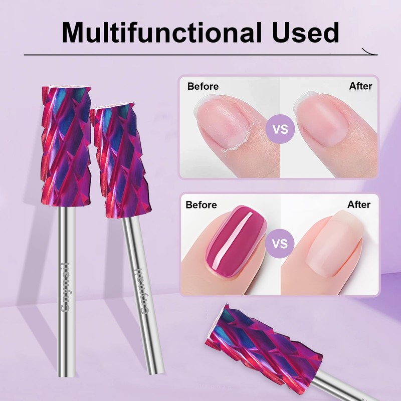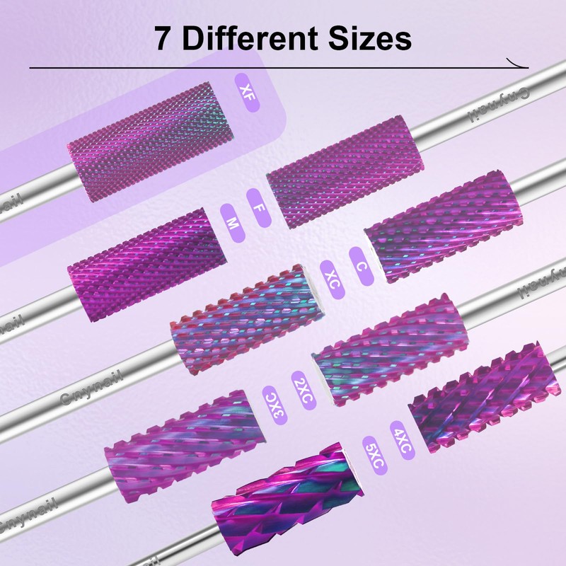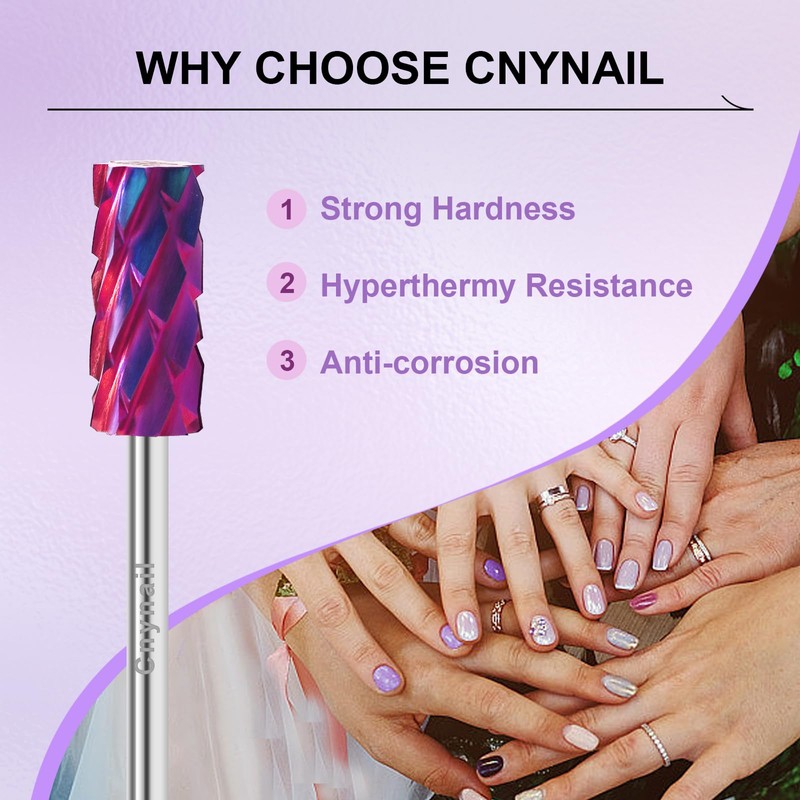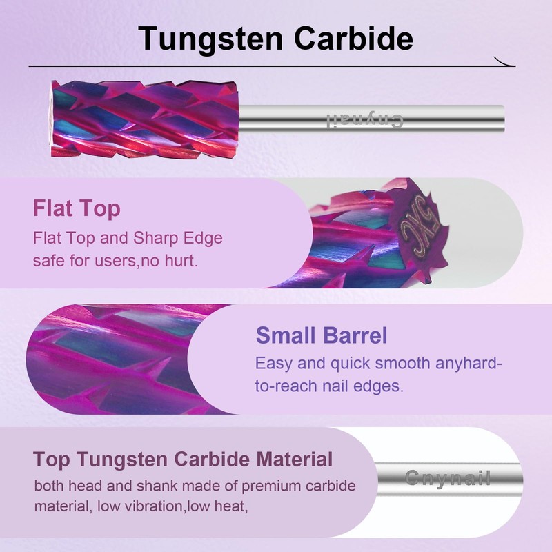 Cnynail 3/32" Small 5.35MM Barrel Bit Tungsten Carbide Nail Drill Bit Safety Bit for Gel & Acrylic Removal, Right Way Rotating Efile Tip, Salon Electric File Accessory (5XC Girt, Purple)