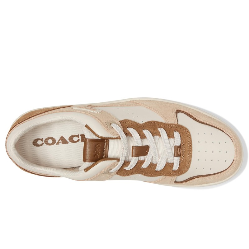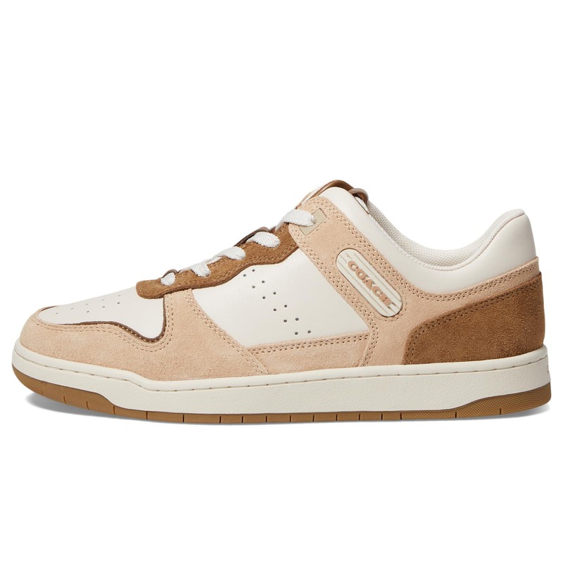 - Give a twist to your fashion style by wearing COACH C201 Suede sneakers. A color-blocked design makes them eye-catchy. The round-toe sneakers have lace closures and a padded collar for comfort. The shoes are made of suede leather upper, fabric lining