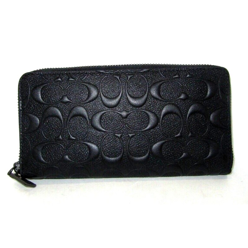 Coach CE551 Embossed Signature Black Leather Long Accordion Zip Wallet NWT $250