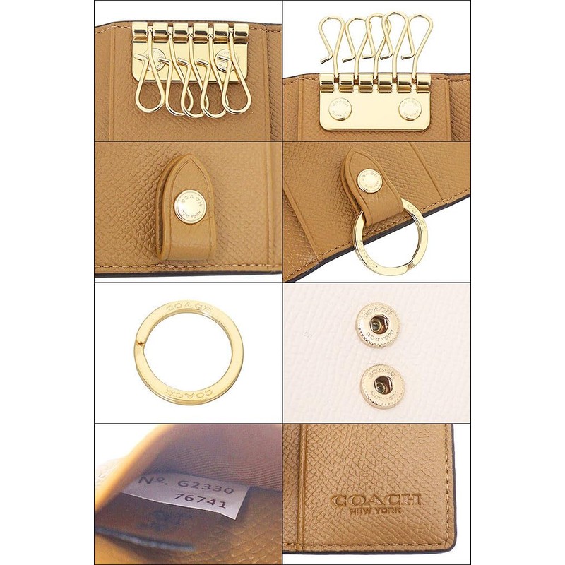 Coach F76741 76741 Accessories (Key Case) Cross Grain Leather 5 Row Key Case, Women's, Men's, Outlet Product, Brand, Parallel Imported, chalk
