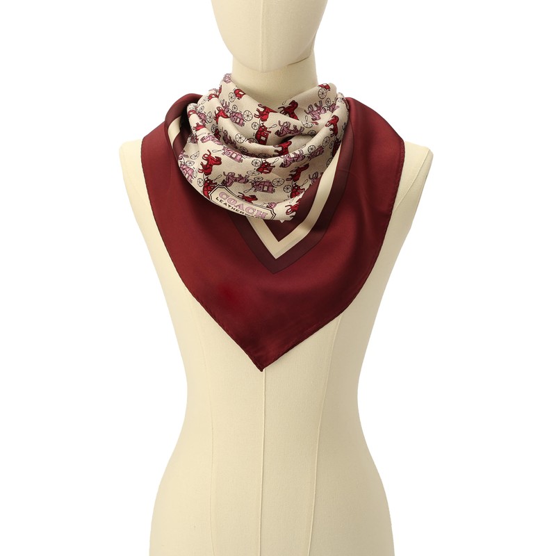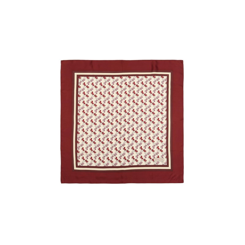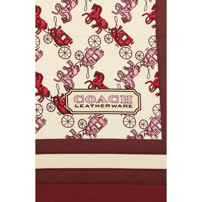 - EDITOR'S NOTES: This lightweight silk square scarf is detailed with the iconic Coach Horse and Carriage motif, which was first introduced in the 1950s. It features the Coach Badge and is finished with a solid border.