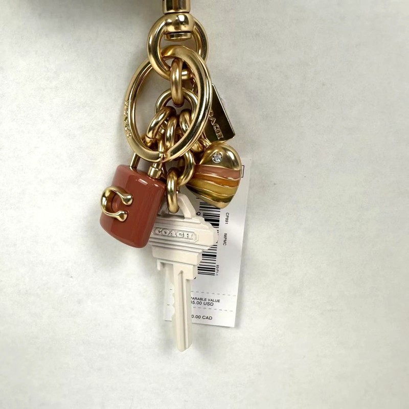 Coach Key Cluster Bag Charm Keychain Gold Pink White Multi CP891 NWT