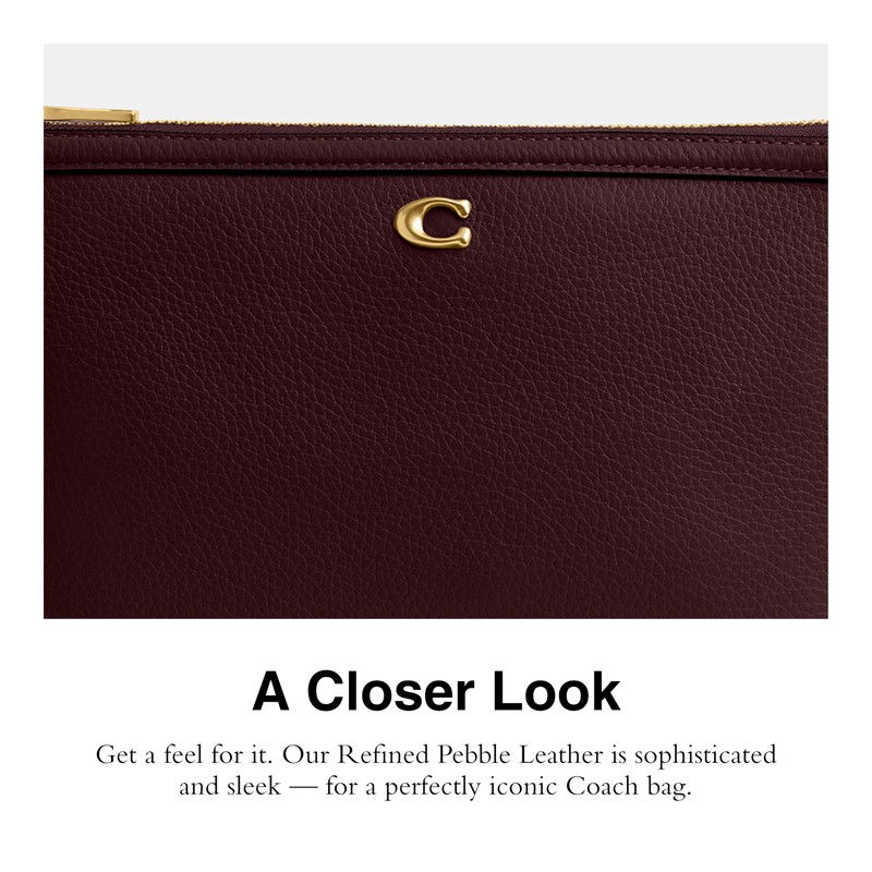 - Refined Pebble Leather: Get a feel for it. Our Refined Pebble Leather is sophisticated & sleek - for a perfectly iconic Coach bag