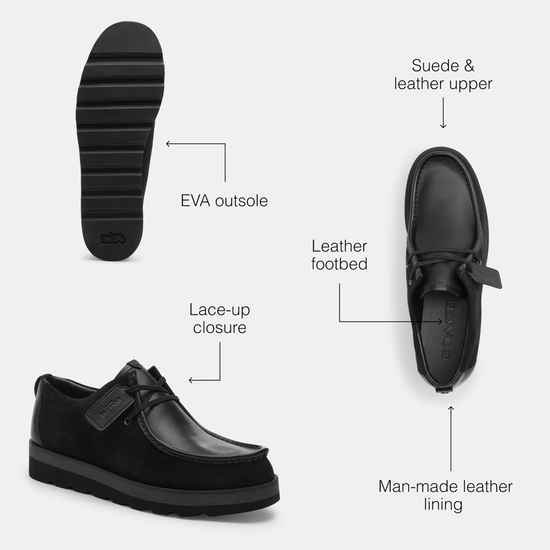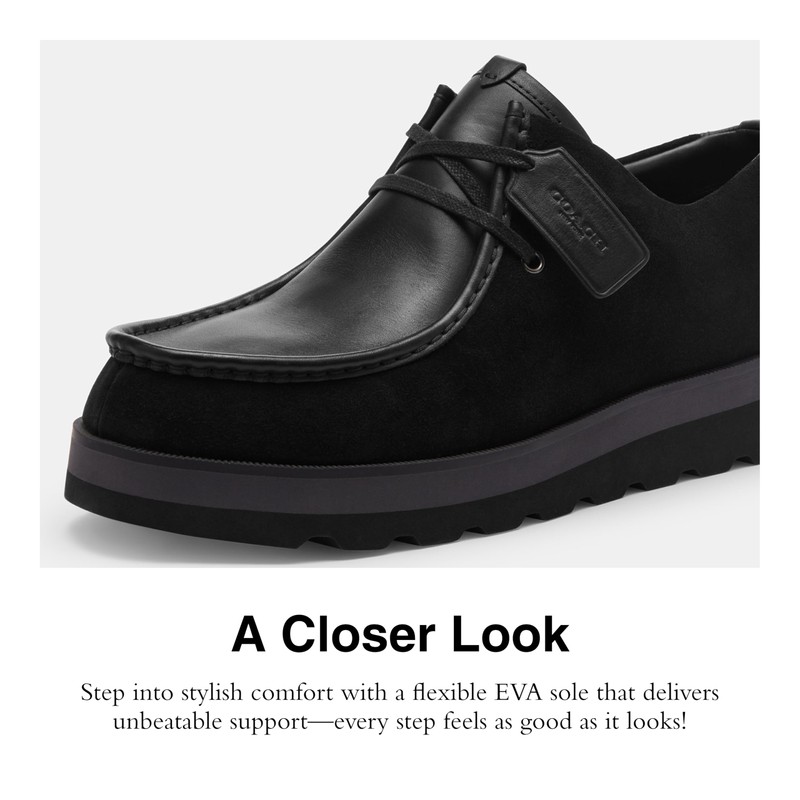 • Suede & Leather Upper: These Coach shoes for men are made from luxe, velvety suede and leather