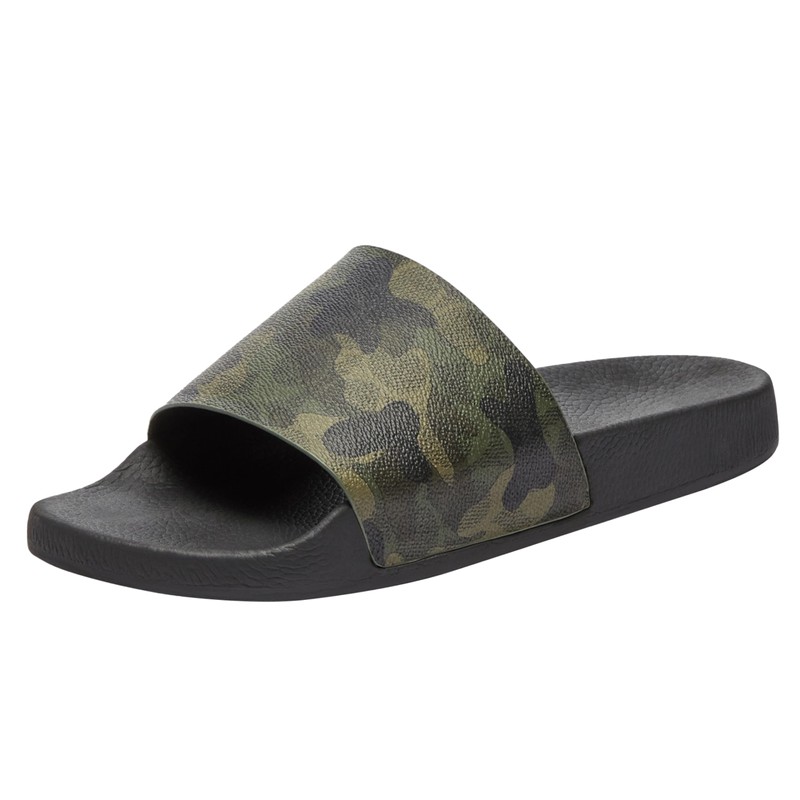 - Signature Canvas Upper: These sporty camo slides are crafted with a signature coated canvas upper