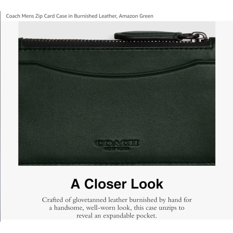 Crafted with precision, the Coach Men's Zip Card Case offers a sleek and sophisticated solution for the modern gentleman. Its burnished leather exterior, paired with a classic black hue, exudes elegance while providing durability. The compact design effortlessly holds multiple cards, ensuring they stay organized and easily accessible.