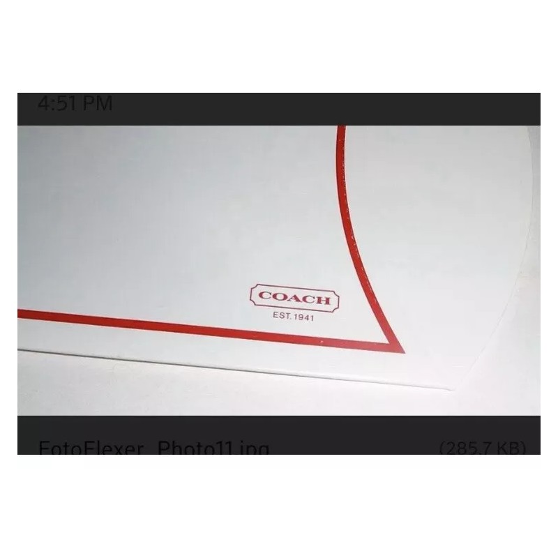 I have also included extra large Coach tissue papers. The boxes are white with red borders.