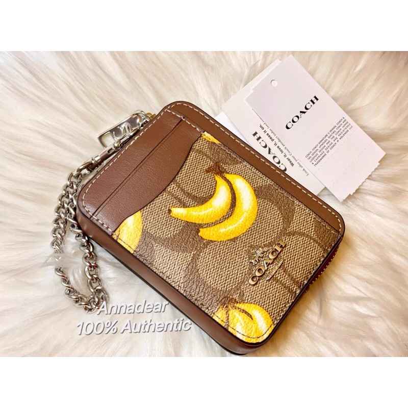 Coach NWT Coach Zip Card Case In Signature Canvas With Banana Print CR833