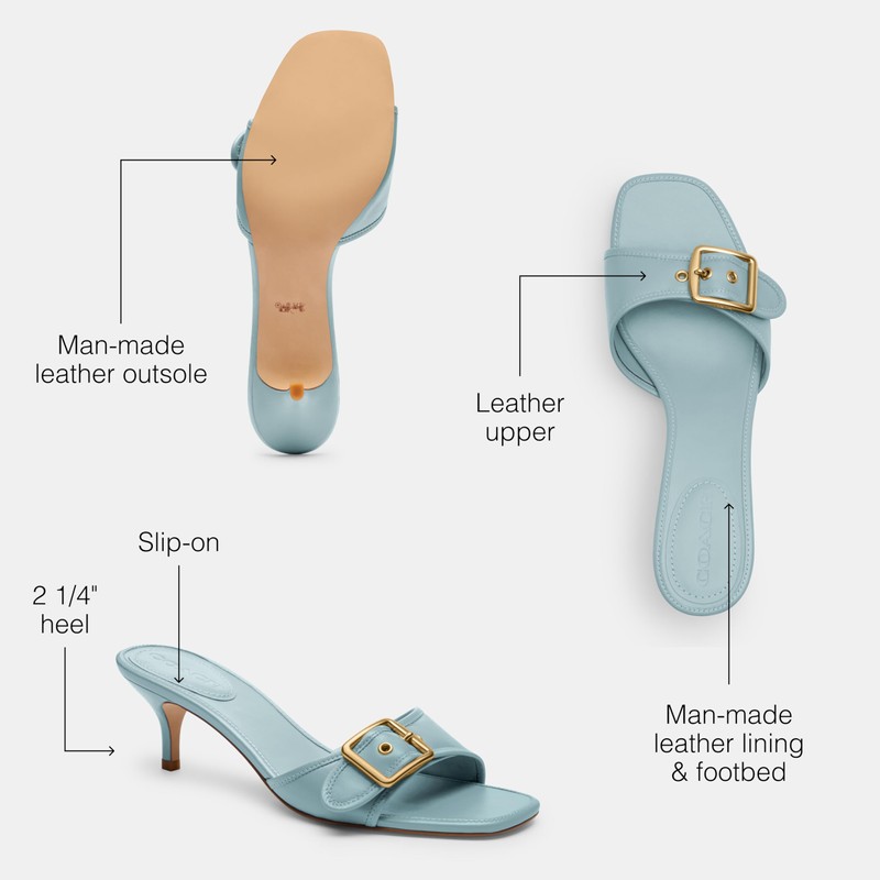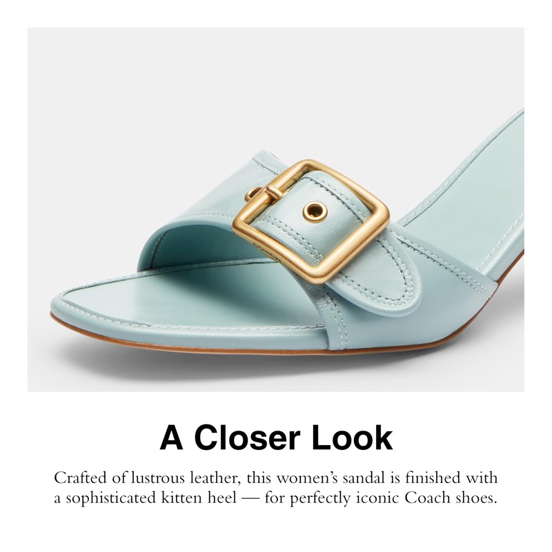- Smooth Leather: Crafted of lustrous leather, this women's sandal is finished with a sophisticated kitten heel - for perfectly iconic Coach shoes