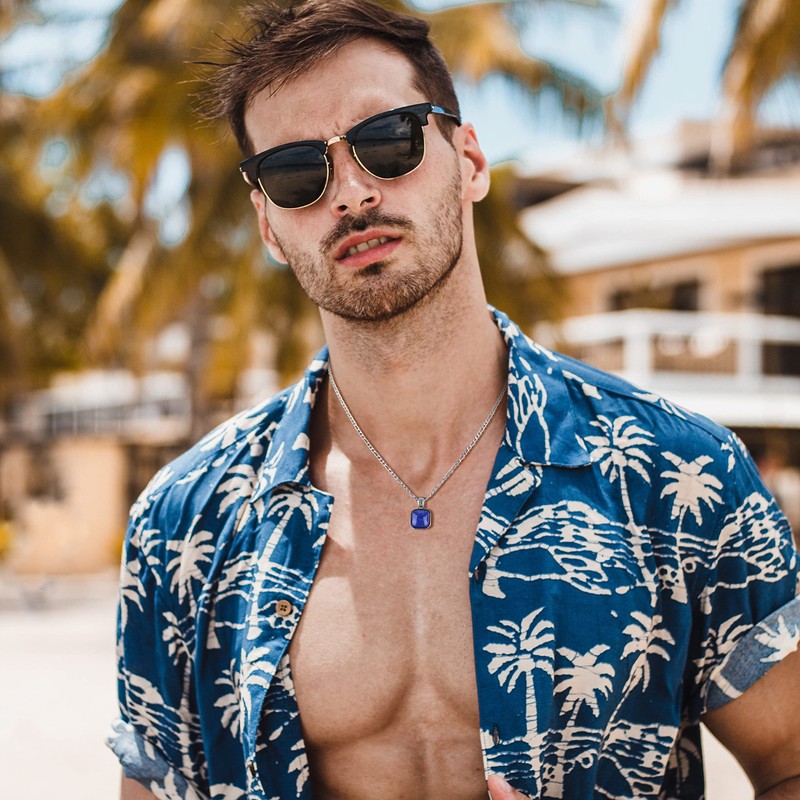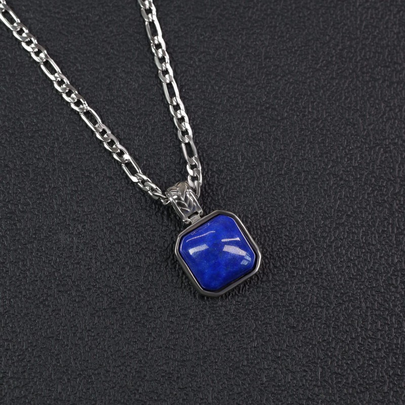 - Size: 0.5 x 0.5 inches (13 x 13 mm) Lapis Lazuli 17.7 + 2.0 inches (45 + 5 cm) Figaro Chain (2.0