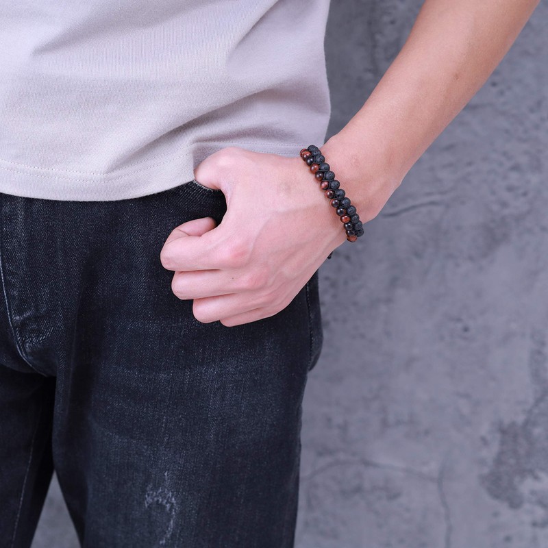 • Material: 6 mm red tiger's eye and 6 mm lava stone