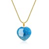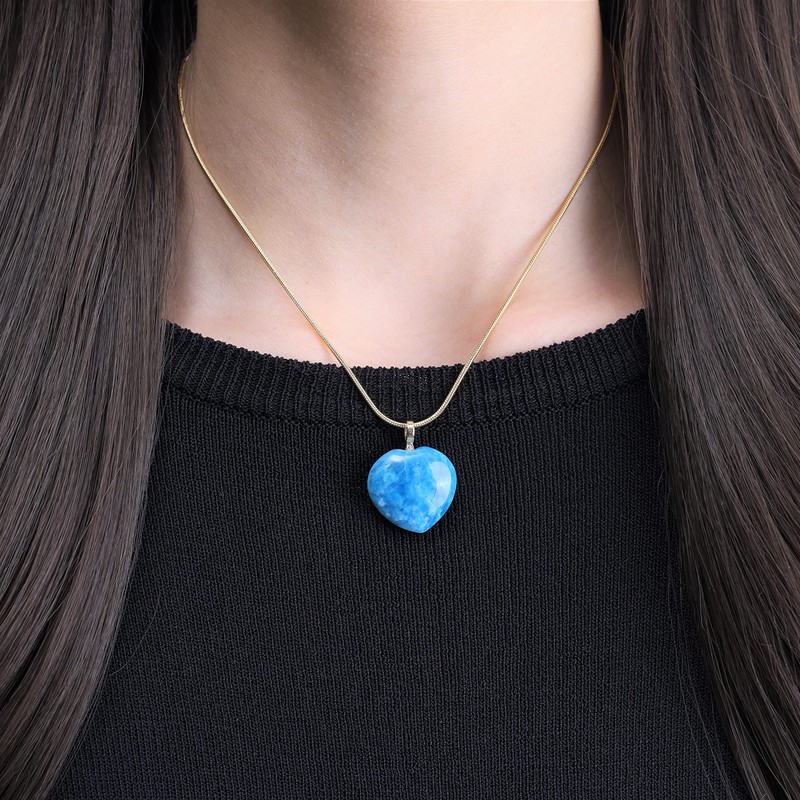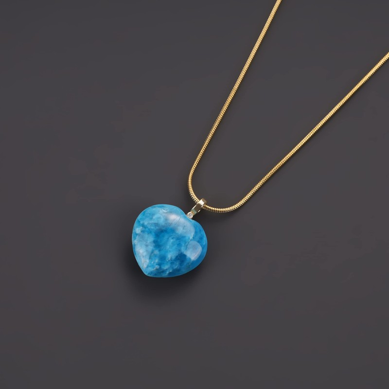 This cute heart necklace is made of apatite and stainless steel snake chain that features a bright blue color.