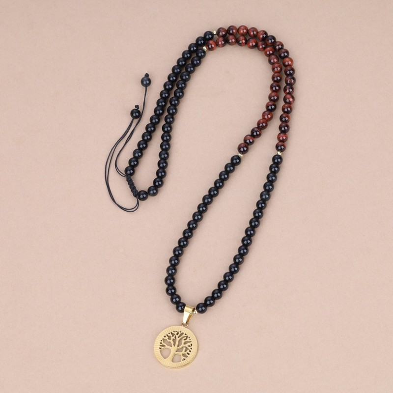 Coai Tree of Life 108 Beads, Obsidian, Tiger Eye, Protection Against Evil Affairs, Power Stone Bracelet, Tree of Life, Necklace, Men's, Women's, obsidian, red tiger eye