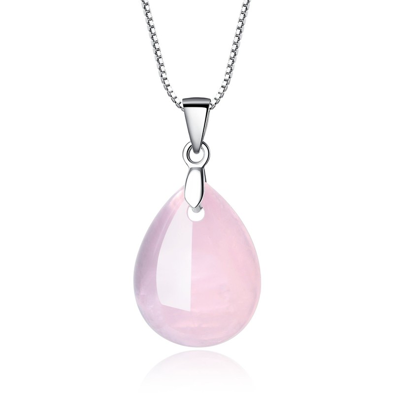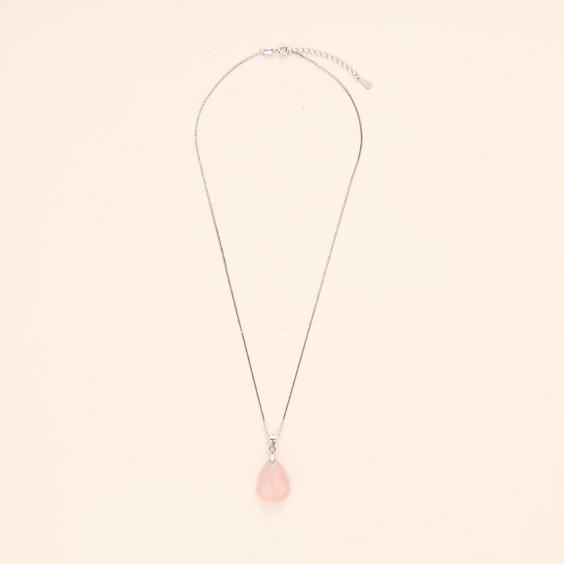 - This crystal necklace measures 0.7*0.5*0.24"(1.8*1.2*0.6cm) Rose Quartz teardrop pendant; 925 sterling silver cable 16"(40cm) chain with 2"(5cm) extender