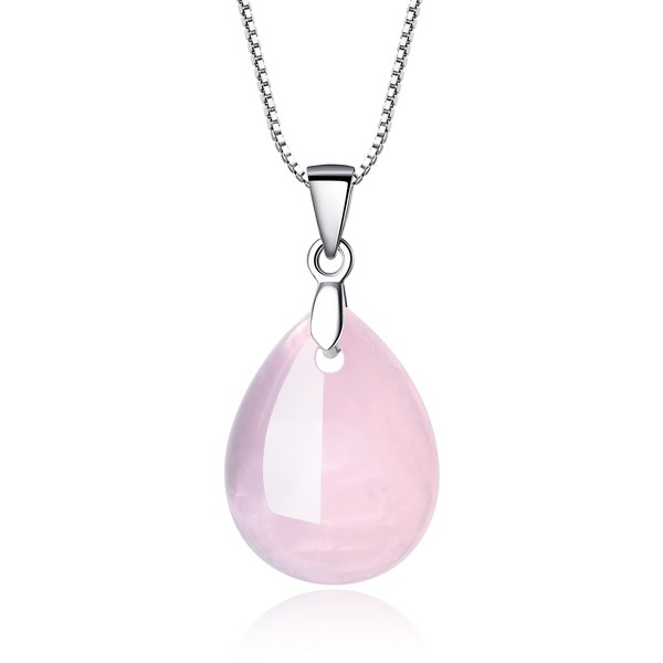 COAI Womens 925 Sterling Silver Teardrop Rose Quartz Crystal Necklace