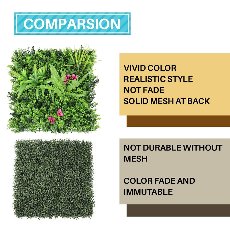 - Reconfigure them into whatever shape you want- pieces are easy to cut or snap together if additional pieces needed. Our denser grass wall decor panels are not “see through” and offer better privacy hedges. Our foliage leaf stems are clean, with no plastic blurs.